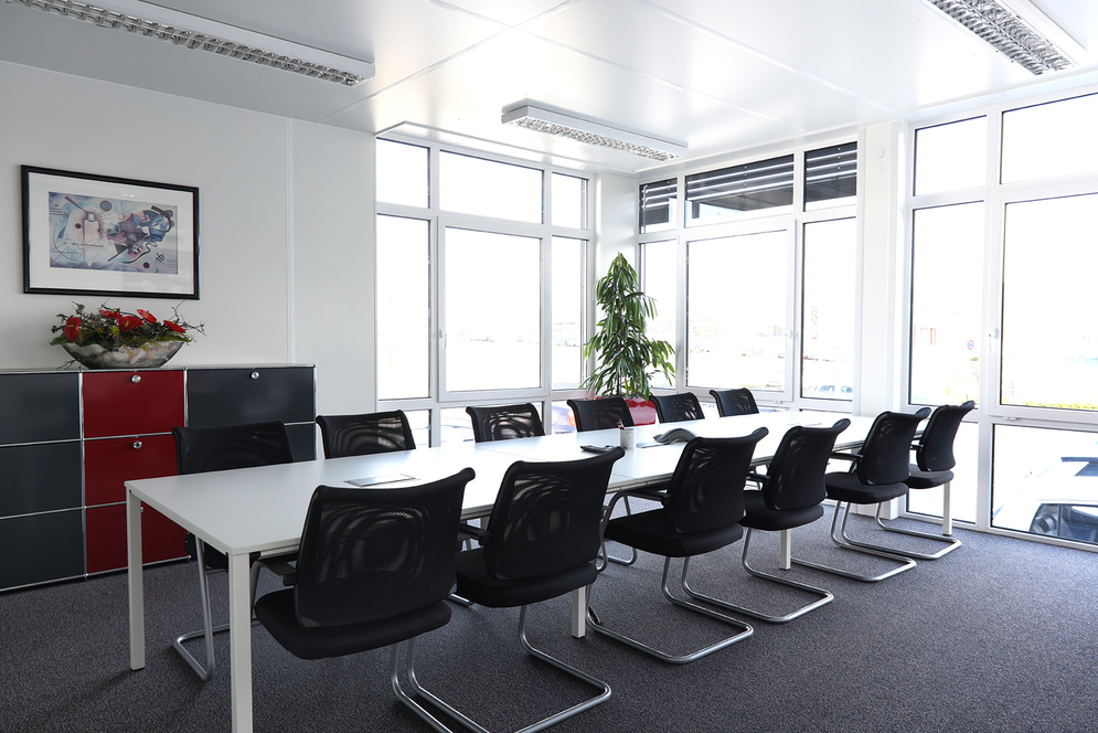 Die klimatisierten Büroräume mit großzügiger, raumhoher Verglasung schaffen ein lichtdurchflutetes Arbeitsumfeld, das die Produktivität und das Wohlbefinden der Mitarbeiter fördert. Die Außenjalousien bieten dabei einen flexiblen Sonnenschutz, der jederzeit angenehme Lichtverhältnisse sicherstellt, selbst an sonnigen Tagen.