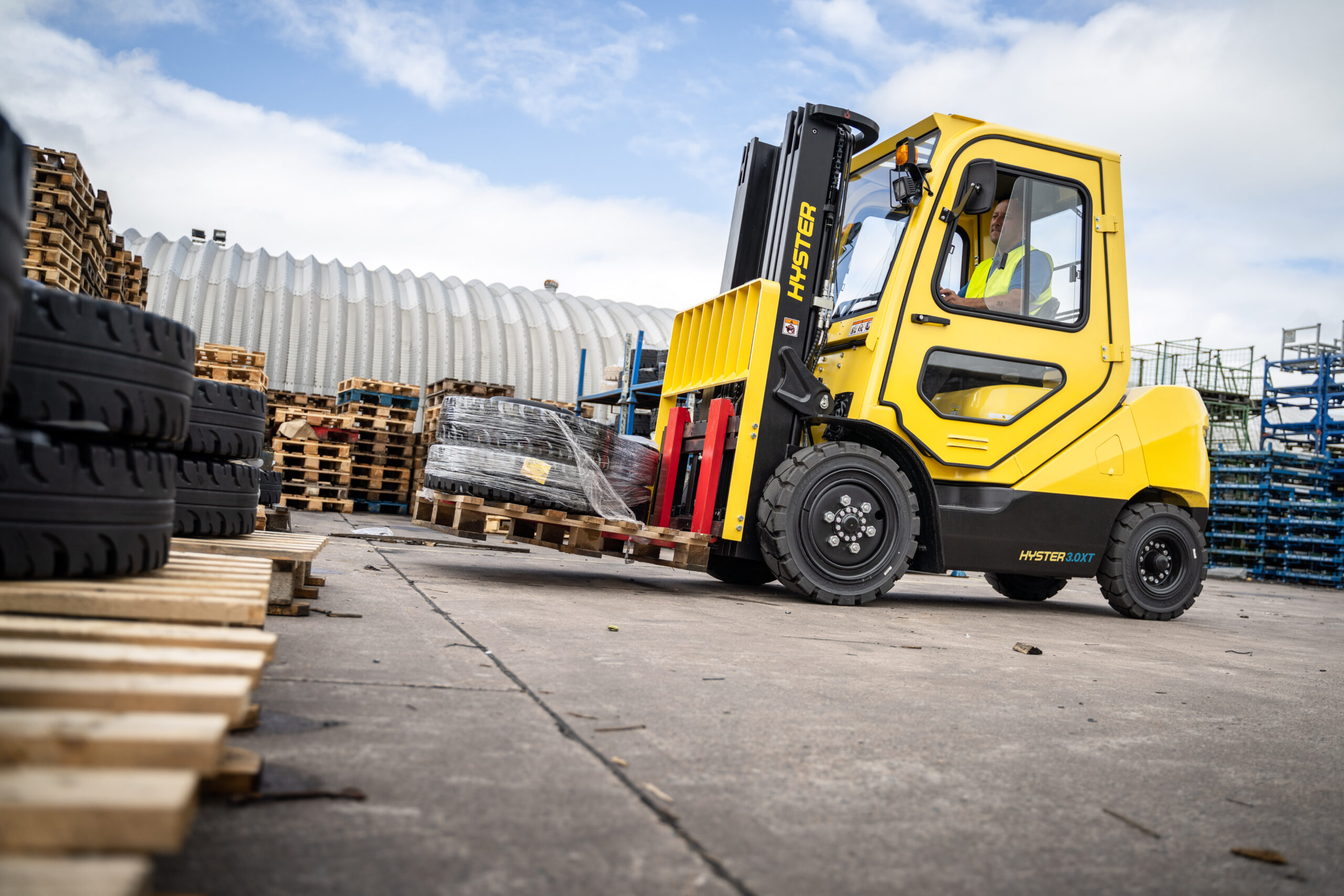 Der neue Hyster J2.0–3.5XTLG setzt neue Maßstäbe im Bereich elektrischer Gegengewichtsstapler. Mit seiner starken 154-Volt LiFePO4-Batterie (35 kWh), großen Superelastikreifen und dem robusten Design bietet er die Leistungswerte eines Dieselstaplers – jedoch emissionsfrei, leise und deutlich effizienter. Dieser Elektrostapler wurde speziell für Betriebe entwickelt, die eine robuste, zuverlässige und kraftvolle Lösung für den Innen- und Außeneinsatz benötigen. Durch die integrierte Lithium-Ionen-Batterie und das schnelle Zwischenladen mit bis zu 150 A bleibt der Stapler auch im Mehrschichtbetrieb stets einsatzbereit.