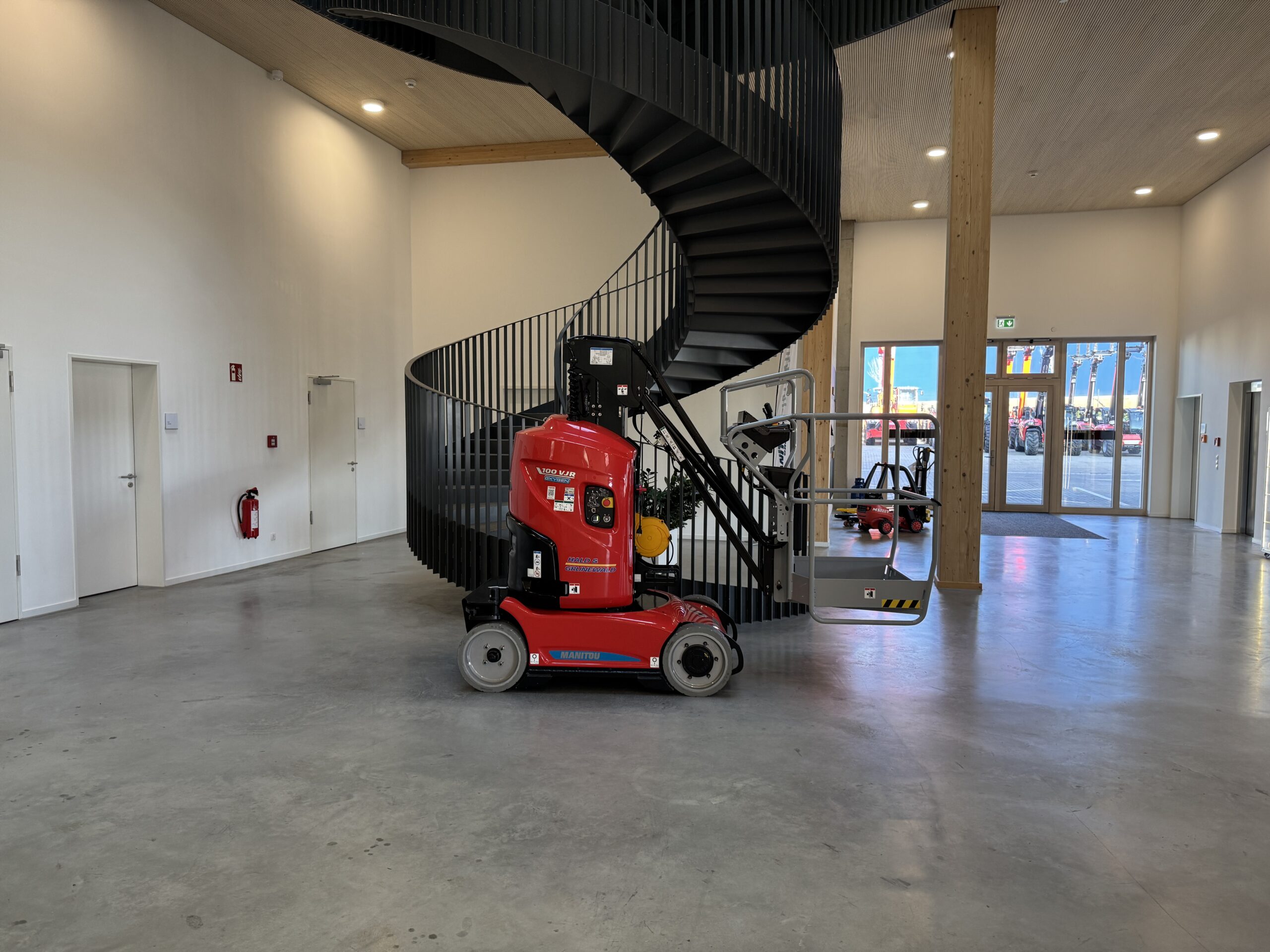 Die Manitou 100 VJR ist die ideale Lösung für Wartungs- und Installationsarbeiten in Industrie und Handel. Mit einer Arbeitshöhe von 9,90 m und einem kompakten Fahrwerk lässt sich diese Elektro-Vertikalarbeitsbühne selbst durch Standardtüren manövrieren. Das Besondere: Der integrierte Schwenkarm ermöglicht eine seitliche Reichweite von über 3 Metern, sodass Sie Hindernisse mühelos überwinden können. Dank des emissionsfreien 24V-Elektroantriebs und der nicht-markierenden Reifen ist sie perfekt für empfindliche Böden im Innenbereich geeignet. Vertrauen Sie auf die Expertise von Hald & Grunewald und optimieren Sie Ihre Höhenarbeiten.